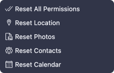 On iOS, you can reset all permissions, as well as reset location, photos, contacts and calendar. On Android, only resetting all permissions is supported.